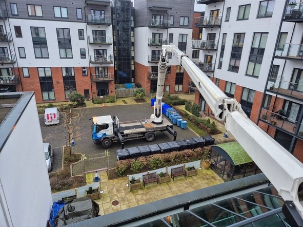 This machine delivers precise, high-level access in tight or restricted spaces — even above conservatories or over rooftops.